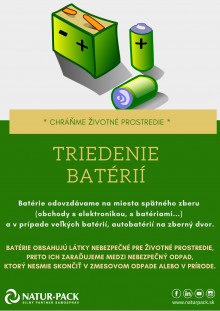 Odovzdaním použitých batérií a akumulátorov zamedzíte úniku nebezpečných látok do prírody a prispejete svojím dielom k ochrane životného prostredia.